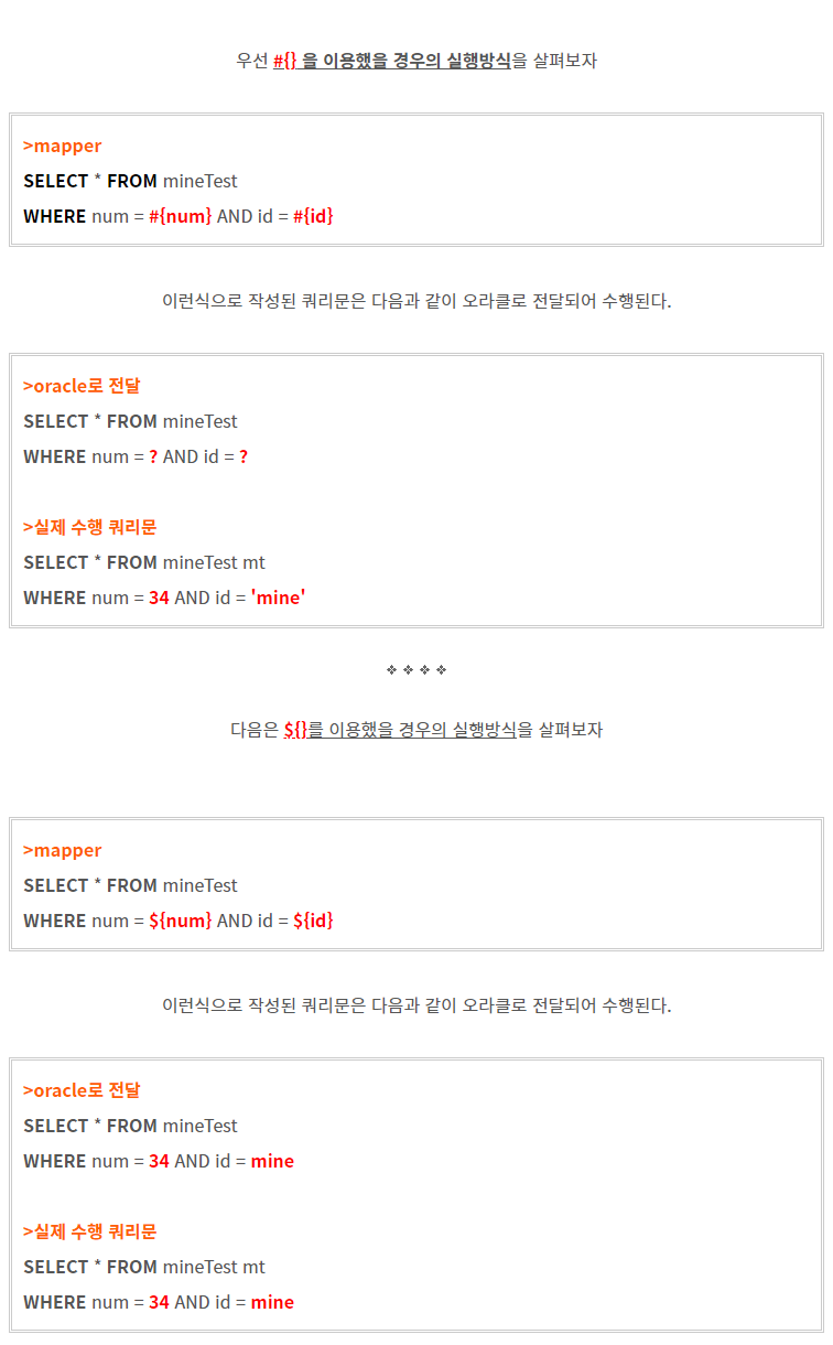 ※ 필요한 때가 아니면 # { } 을 쓰는 게 효율적인 측면이나 보안 측면에서 더 유리